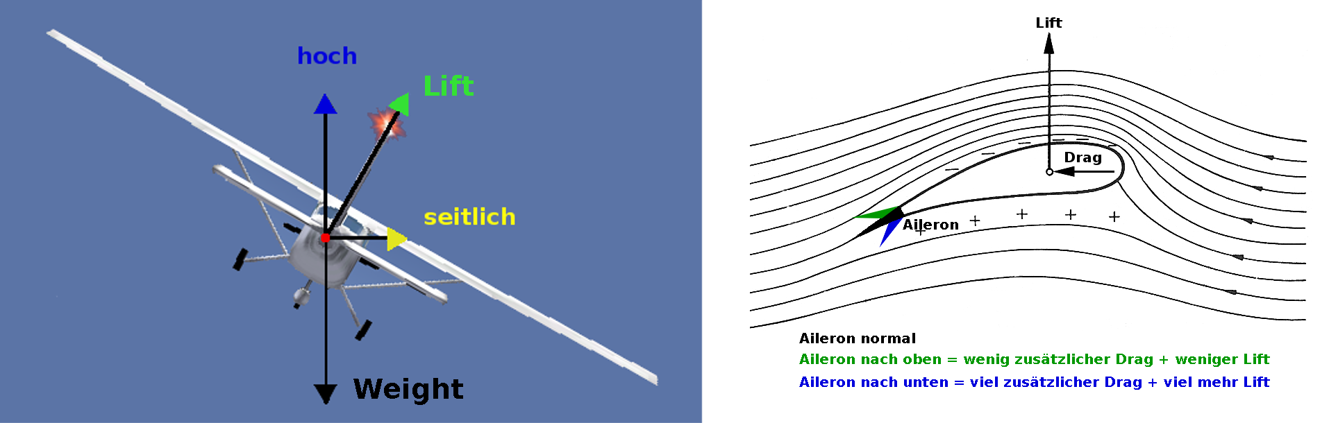 Aileron right Querruder rechts Elevator down/forward Höhenruder runter/vorwärts Rudder right Seitenruder rechts Throttle forward Gashebel vorwärts View Direction left Sicht-Richtung links View Elevation upward Sicht-Vertikal aufwärts |