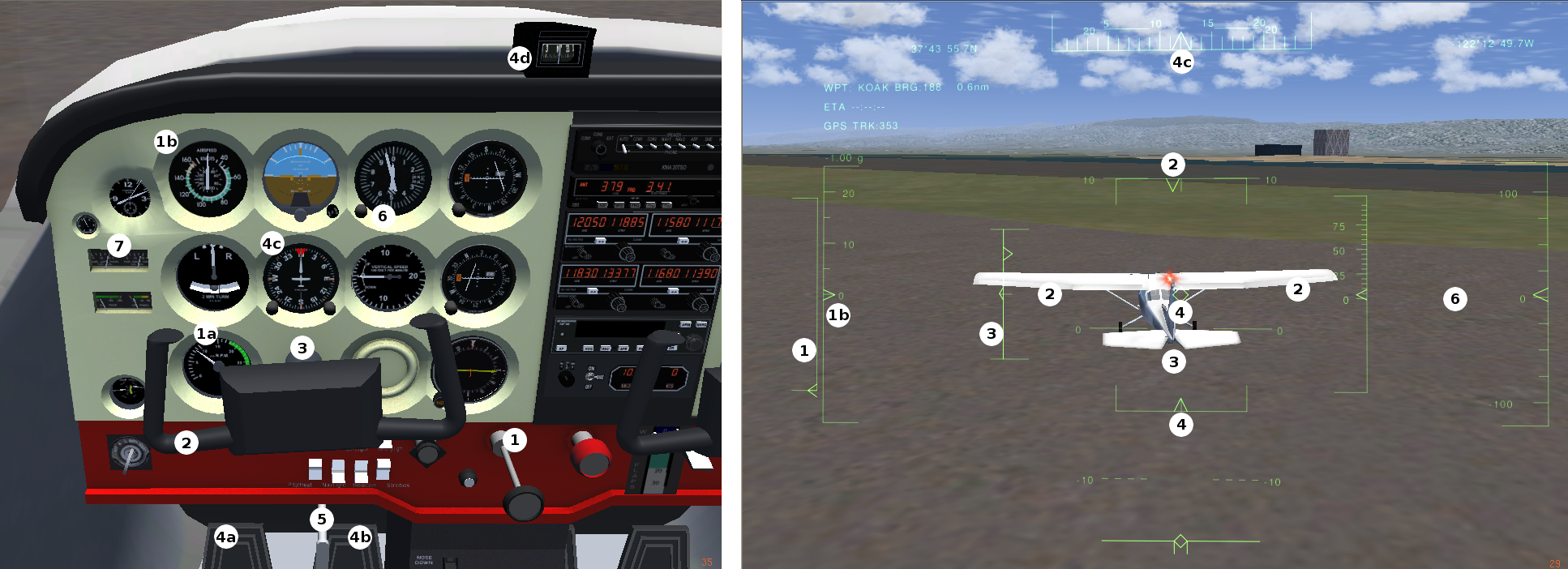 Kapitel 4. Tastaturen, Mäuse, Menüs und Joysticks beinhaltet eine (hoffentlich) komplette Liste aller Tastatur-Befehle, eine Übersicht über die Menü-Optionen, eine detaillierte Beschreibung der Instrumenten-Bretter, und des HUD (Head-Up-Display, Anzeige auf der Frontscheibe), sowie auch die Benutzung der Maus.