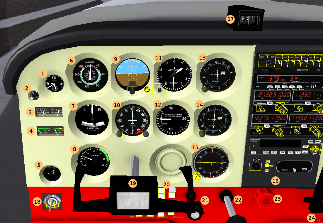 Kapitel 2, Das Instrumentenbrett beschreibt was Du siehst wenn Du im Cockpit sitzt und wozu die Vielzahl der Instrumente benötigt wird.